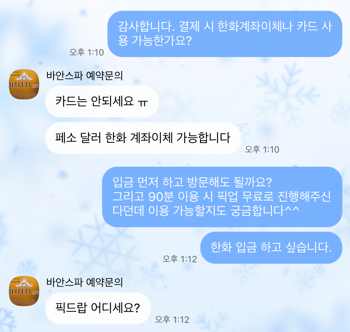 그러던 중 바안스파에서 “90분 이상 마사지”를 “오후 2시 전으로 예약하면 30% 할인”이 적용되는 해피아워가 있다는 사실을 알게되고 바로 예약 문의를 드렸습니다!