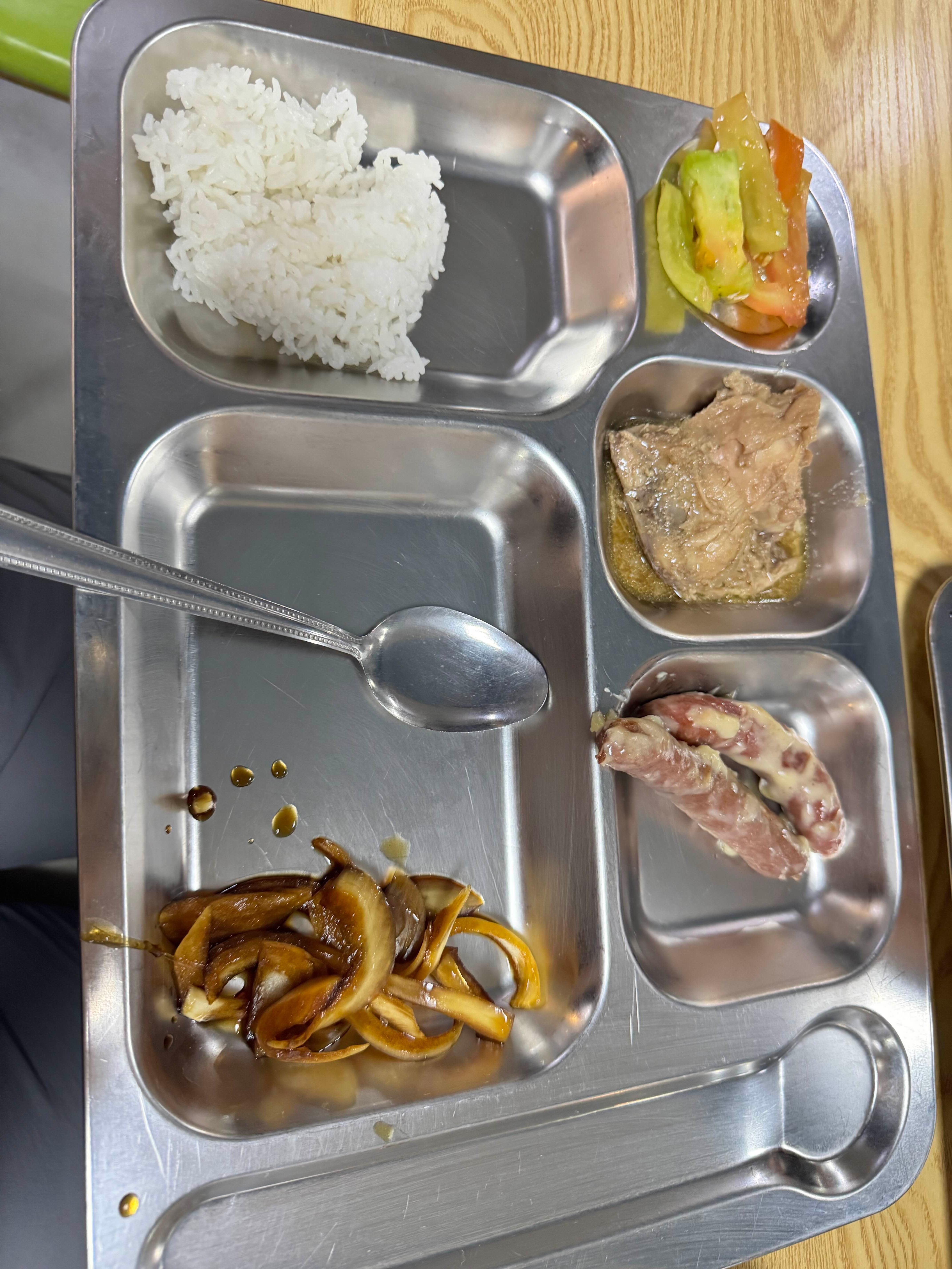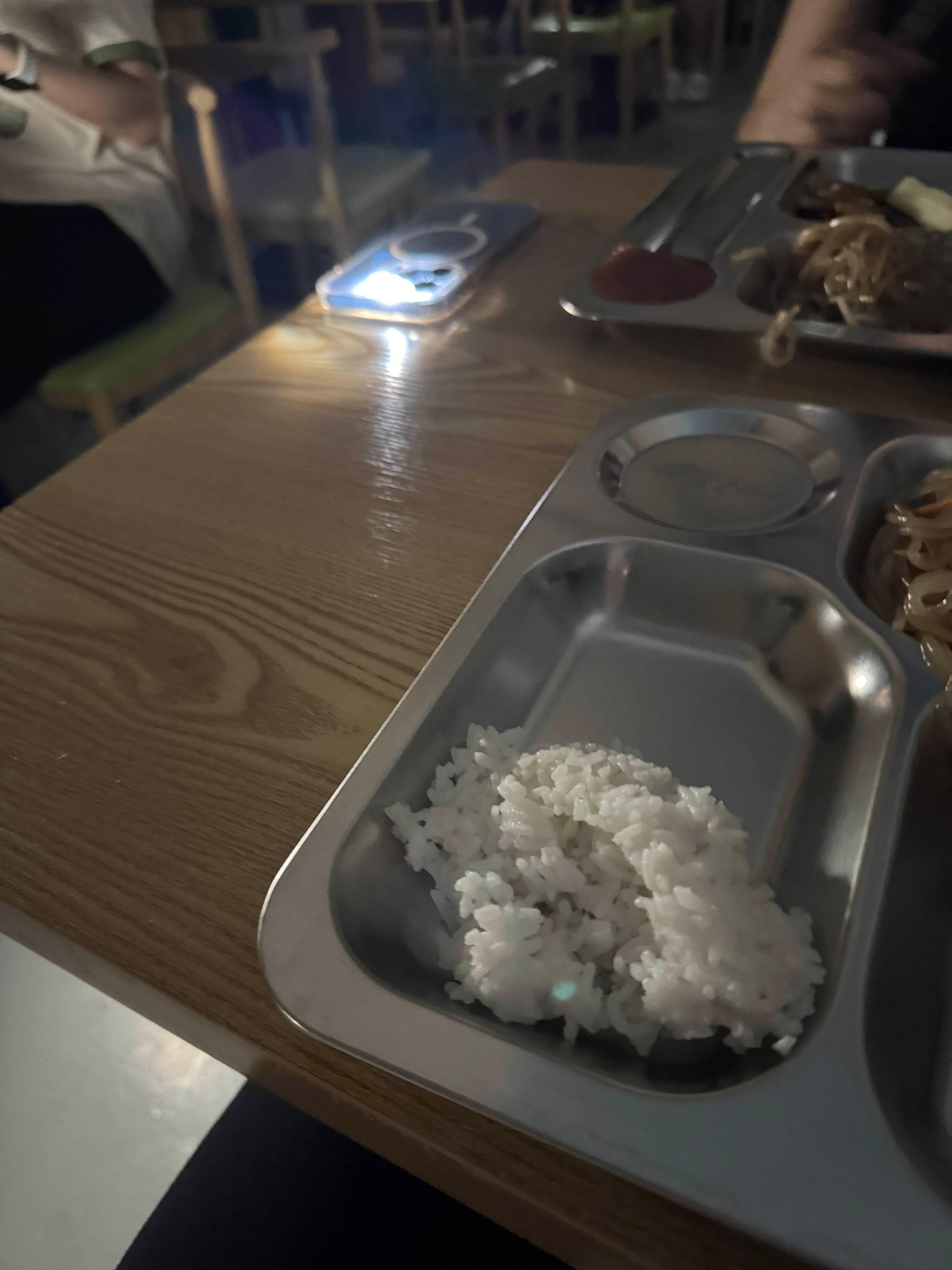 저녁식사 시간까지 전기가 복구되지 않았어요. 전해듣길 낮에 잠깐 이 지역 전체 정전이 되었다가 금방 복구됐는데, 우리 학원으로 들어오는 전력에만 문제가 생겼다고 했던 것 같아요... 그래도 밥은 먹어야되니까 후레쉬 키고 먹었어요 😟