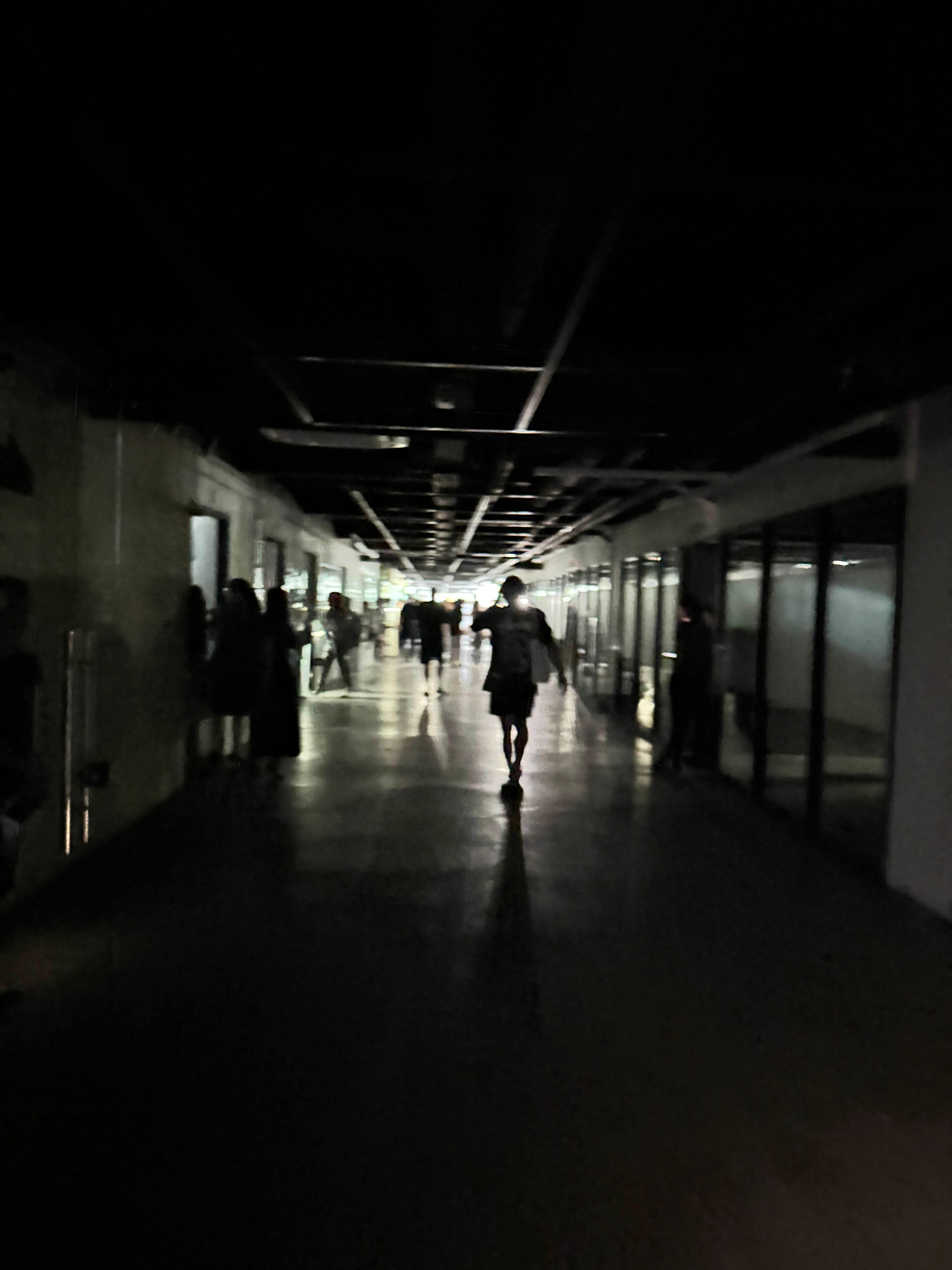 그래도 수업은 하겠지..? 싶어서 내려갔는데 학습공간에도 어둠이 찾아왔어요. 정전 이후 두 번째 수업까지는 햇빛이 있는 공간으로 이동해서 수업을 했는데, 마지막 교시는 그룹클래스라 학원 차원에서 취소하고 다음날 보강을 잡아줬어요.