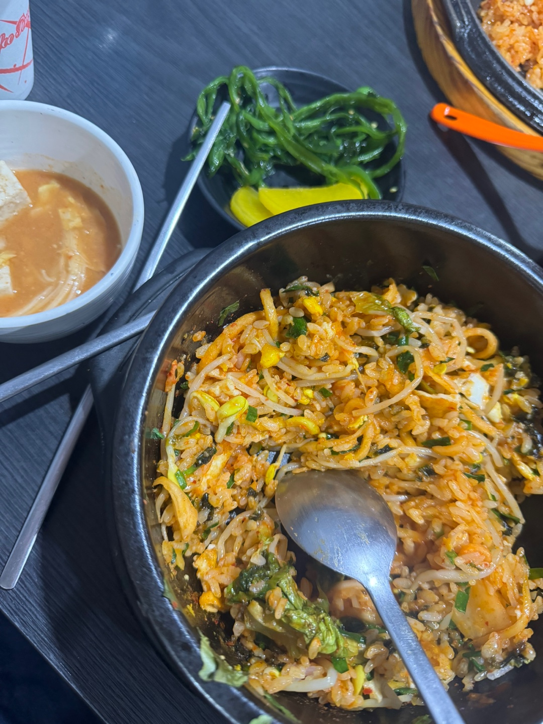 돌솥 비빔밥을 먹습니다! 나물이 풍부하고 고추장을
