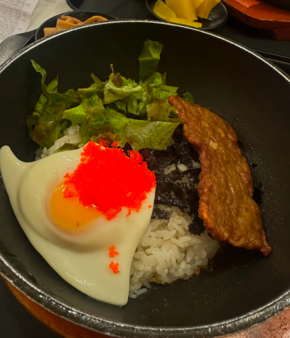뜨끈한 알밥에 계란 후라이, 상추, 김가루가