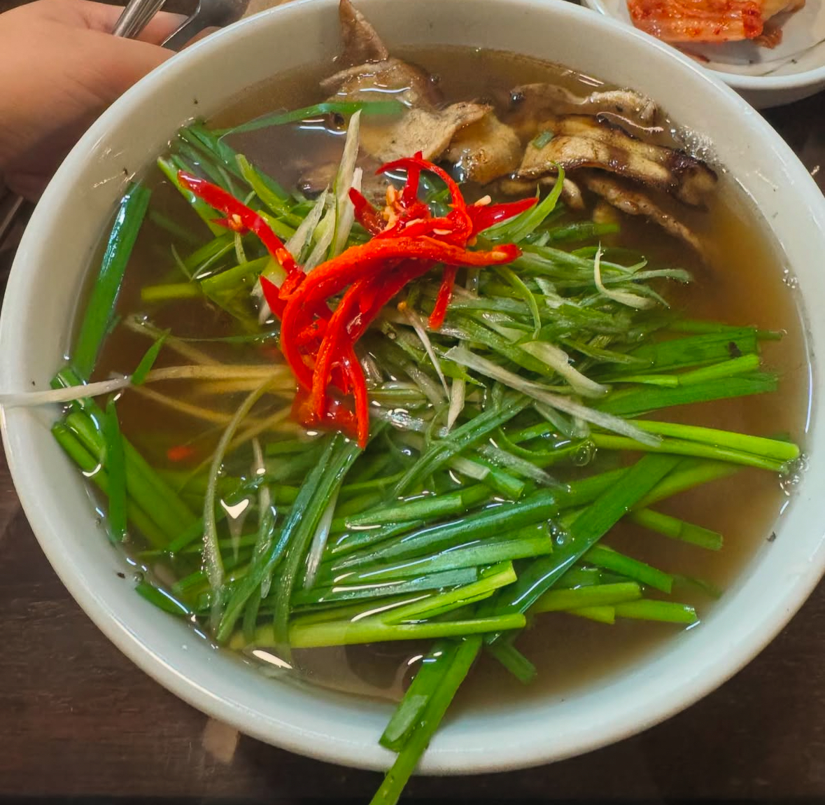 고기 칼국수는 딱 돼지국밥에 칼국수 넣은 맛이에요.